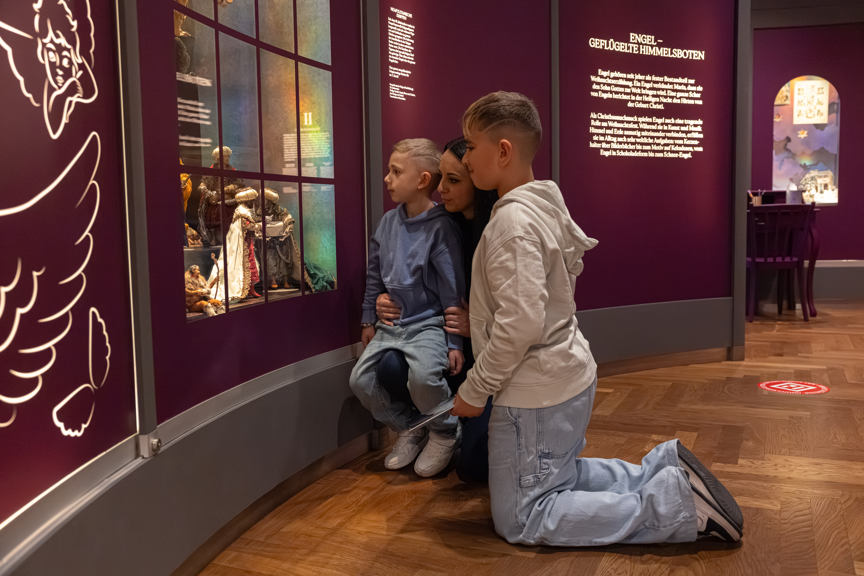 Auch in den Wohnzimmern spielen Engel an Weihnachten eine wichtige Rolle: Sie schmücken heimlich den Weihnachtsbaum, und wenn das Christkind die Geschenke gebracht hat, ertönt zarter Glockenklang. Er zählt – ebenso wie das nur in der Fantasie wahrnehmbare Flügelrauschen der Engel – zu jenen Geräuschen, die den Zauber der Weihnachtszeit ausmachen.