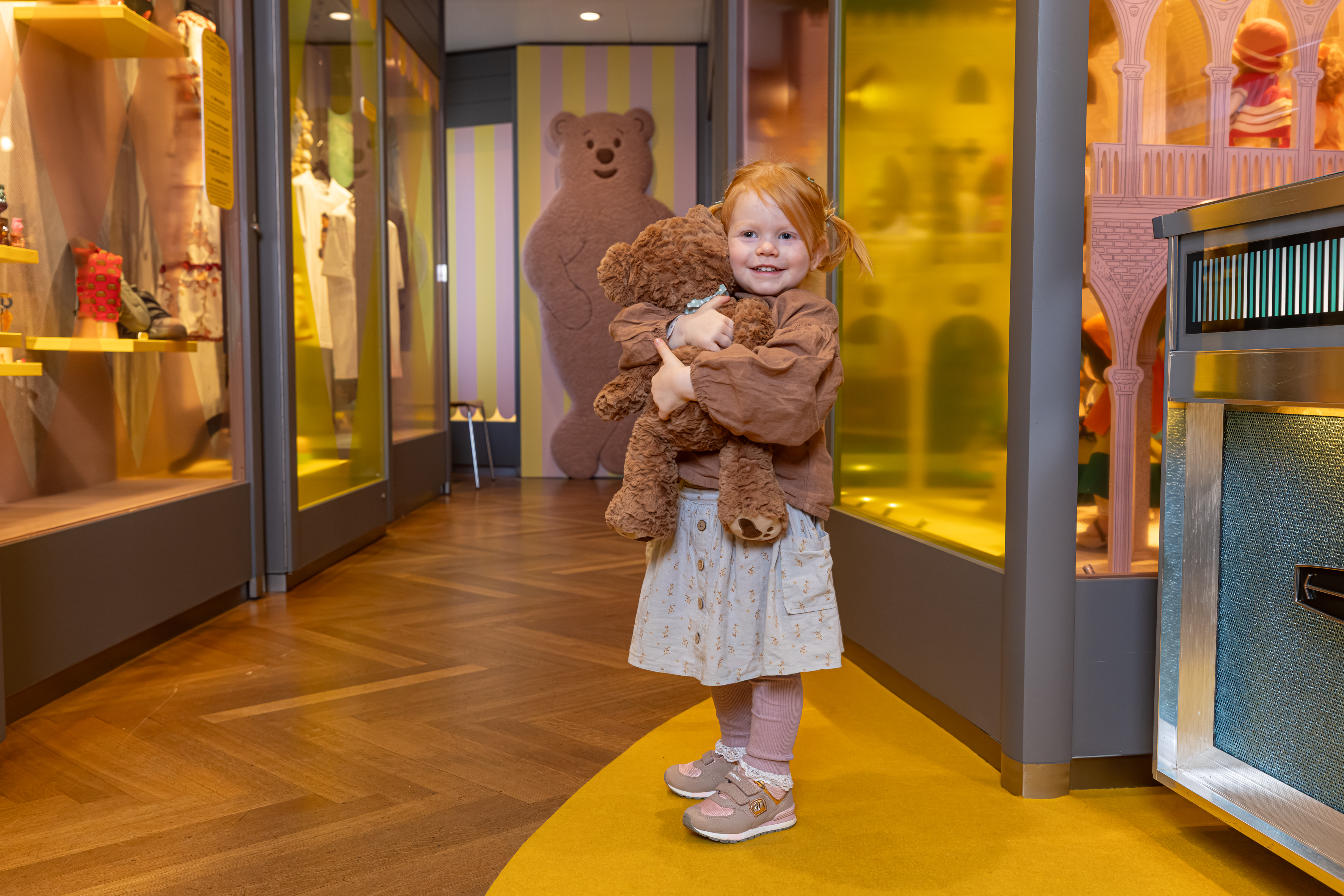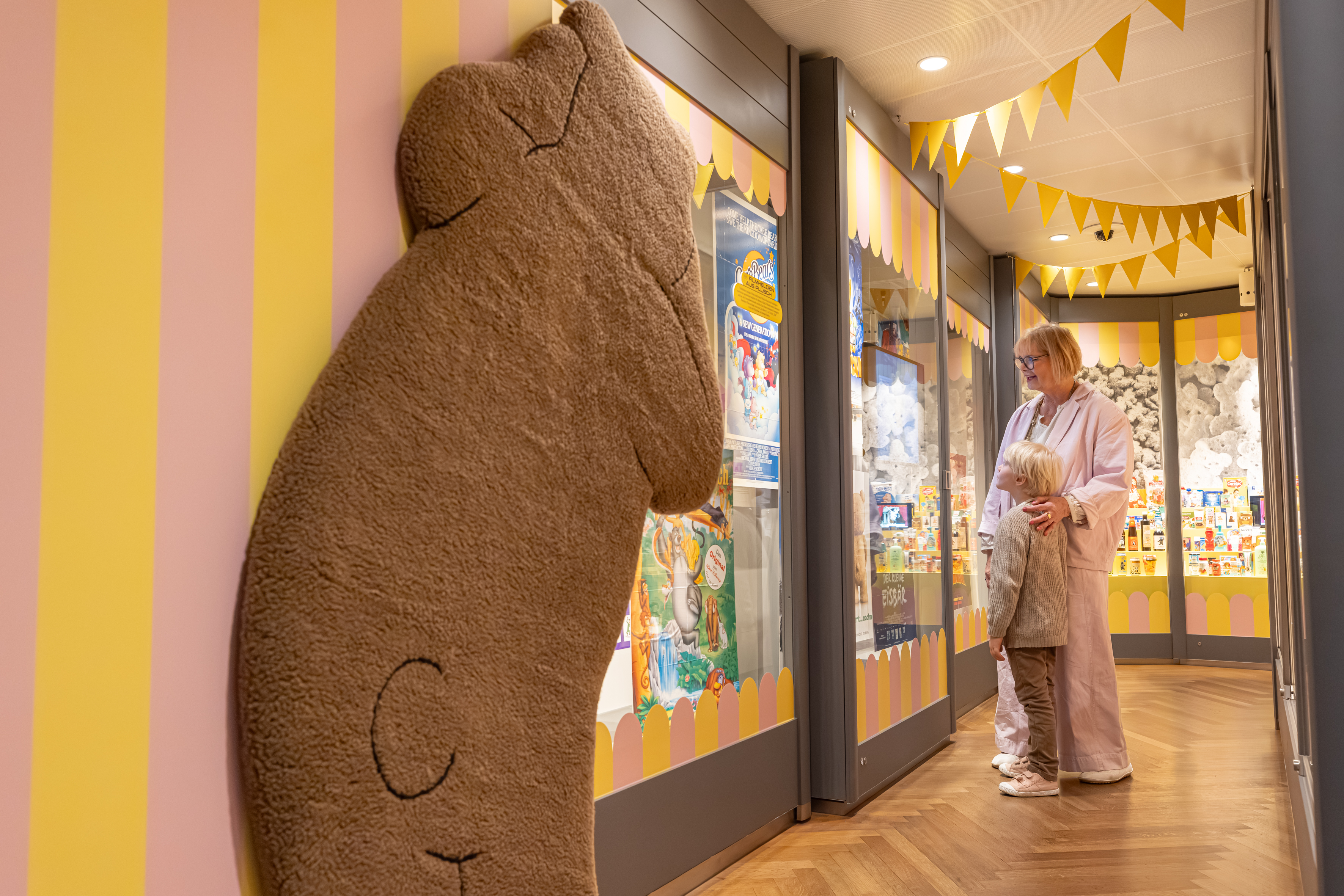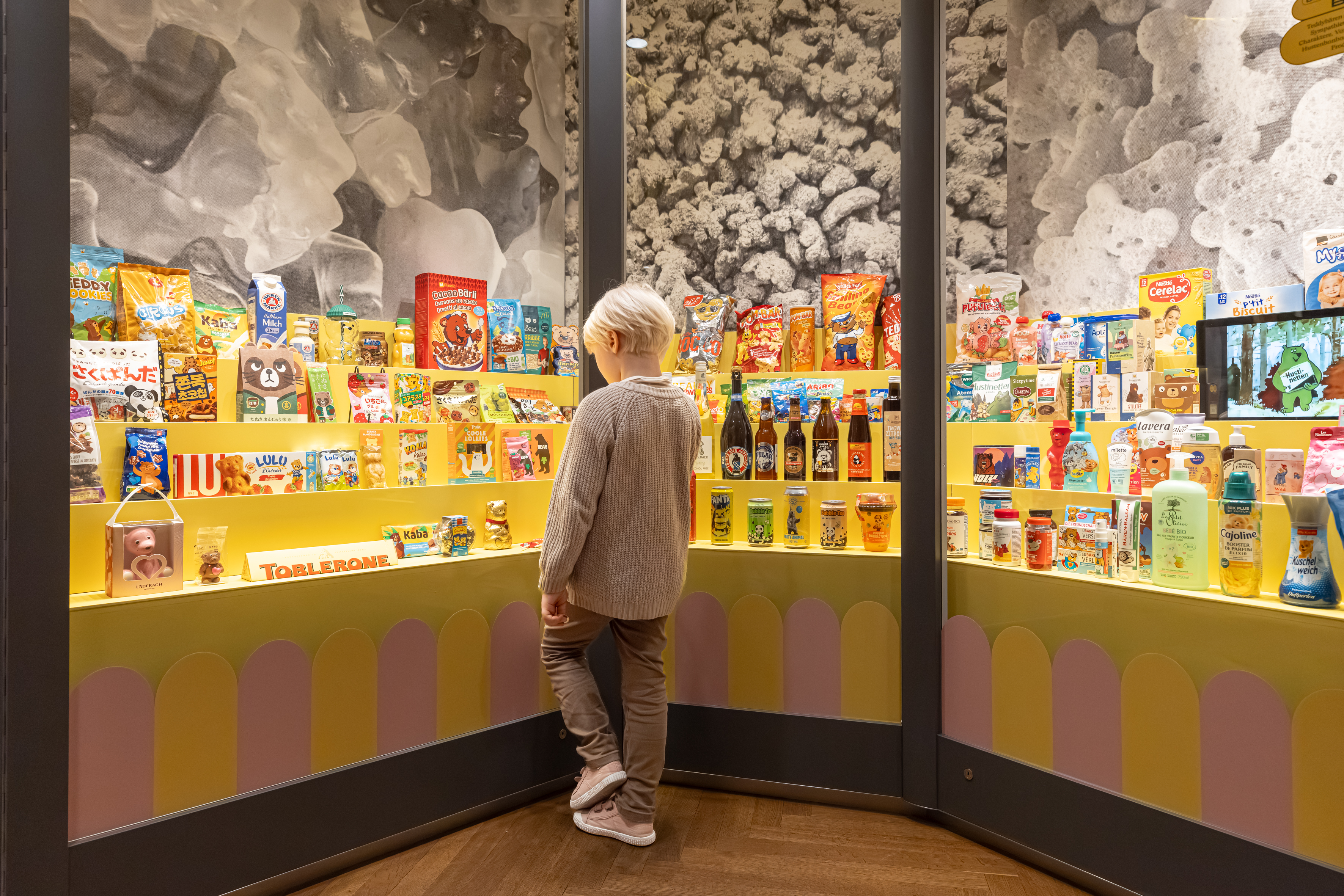 Die Ausstellung erzählt, wie diese Faszination für den Bären ein Plüschtier hervorbrachte, das zu weltweitem Erfolg gelangte. Im „Bärenjahr“ 1907 setzte ein wahrer Boom ein, Teddys eroberten die Kinderzimmer in Europa und den USA. Bald darauf schaffte der Bär in Gestalt von Winnie the Pooh, Paddington oder Balu den Sprung auf die Leinwand und ins Fernsehen. Und auch die Werbung nutzte seine bärige Strahlkraft, etwa mit dem Haribo-Goldbären. Inzwischen ist der Teddy längst Teil des Alltagsdesigns und ziert Lifestyle-Produkte ebenso wie Laufstege, für den ihn Marken wie Ralph Lauren oder Palm Angels neu interpretieren.