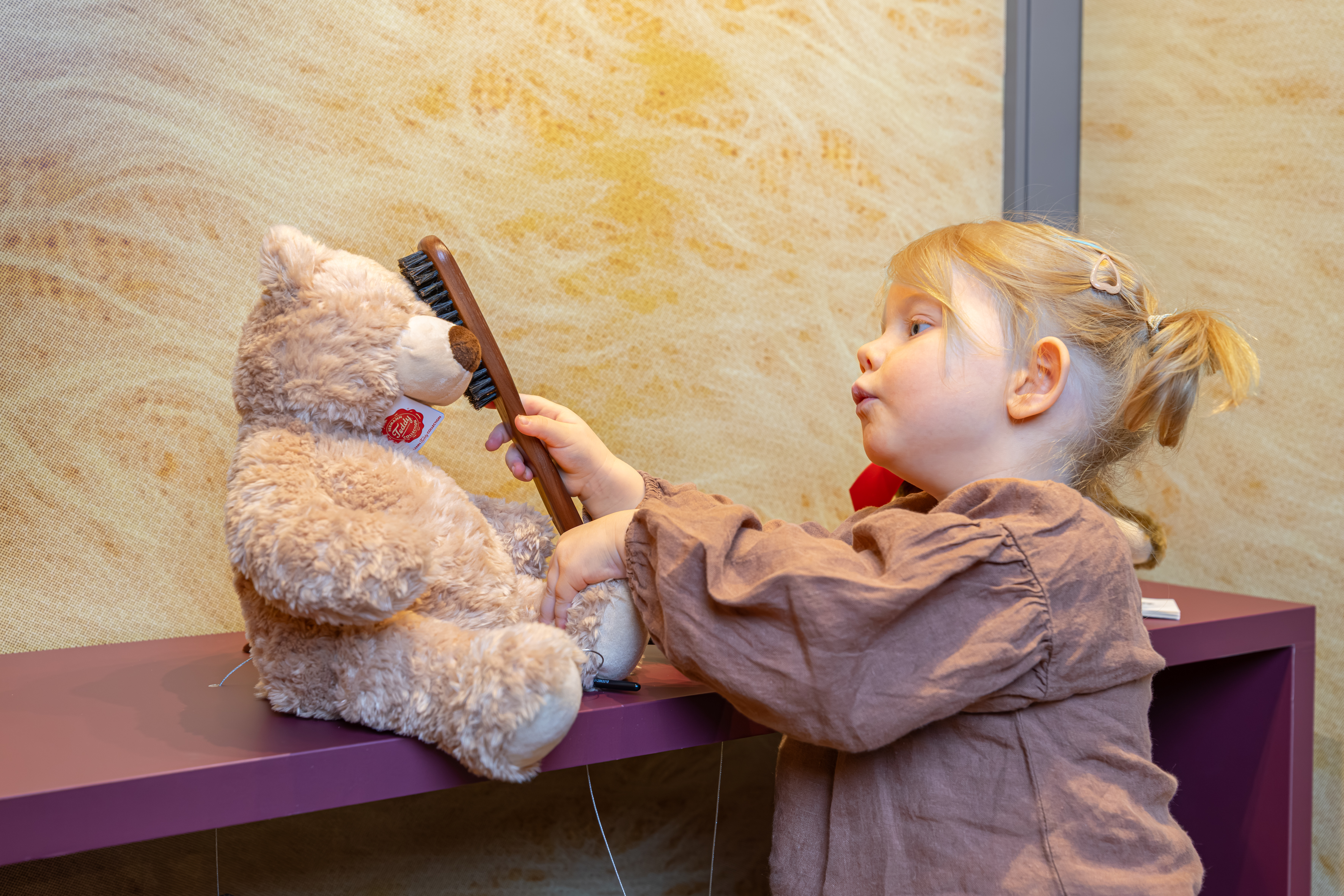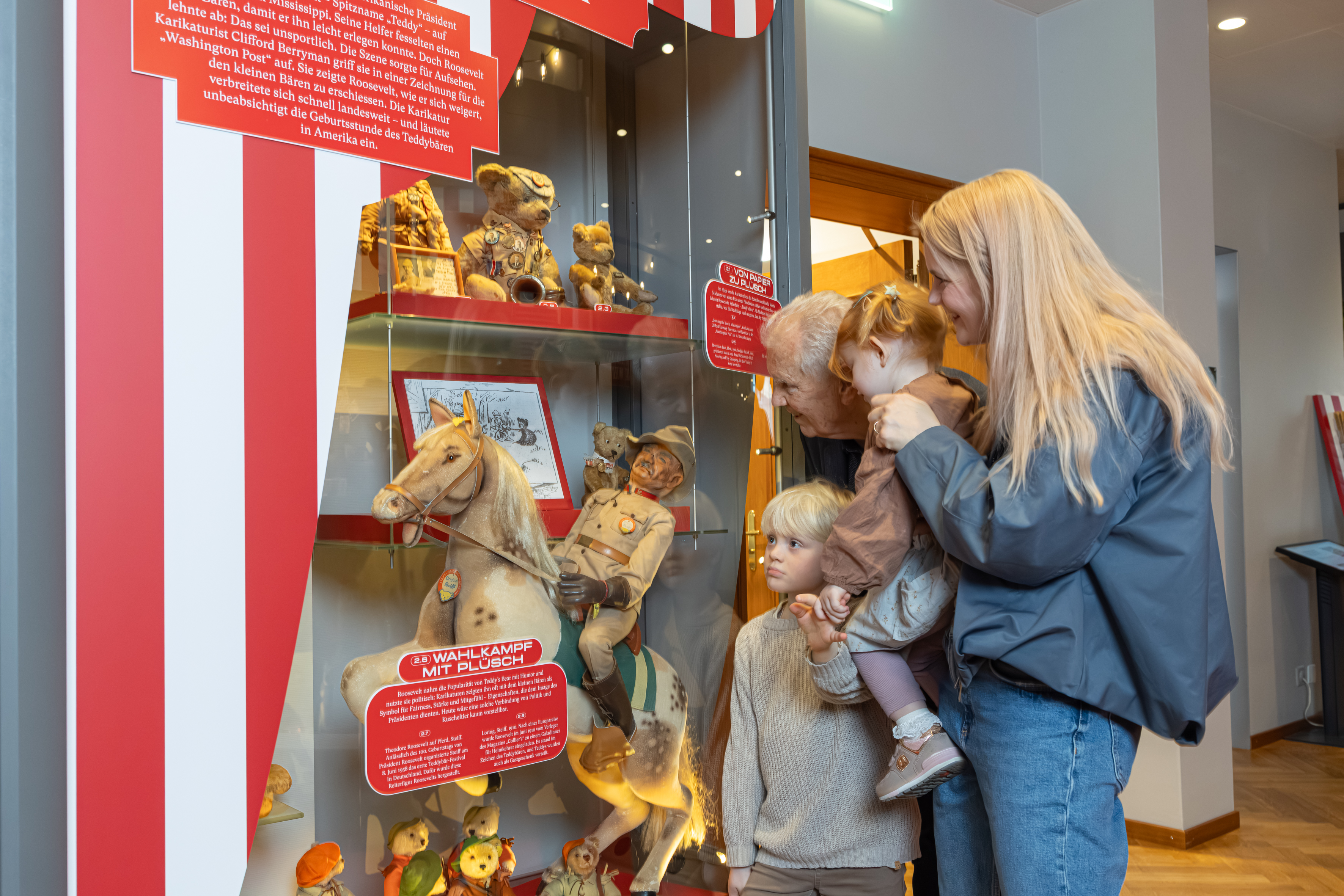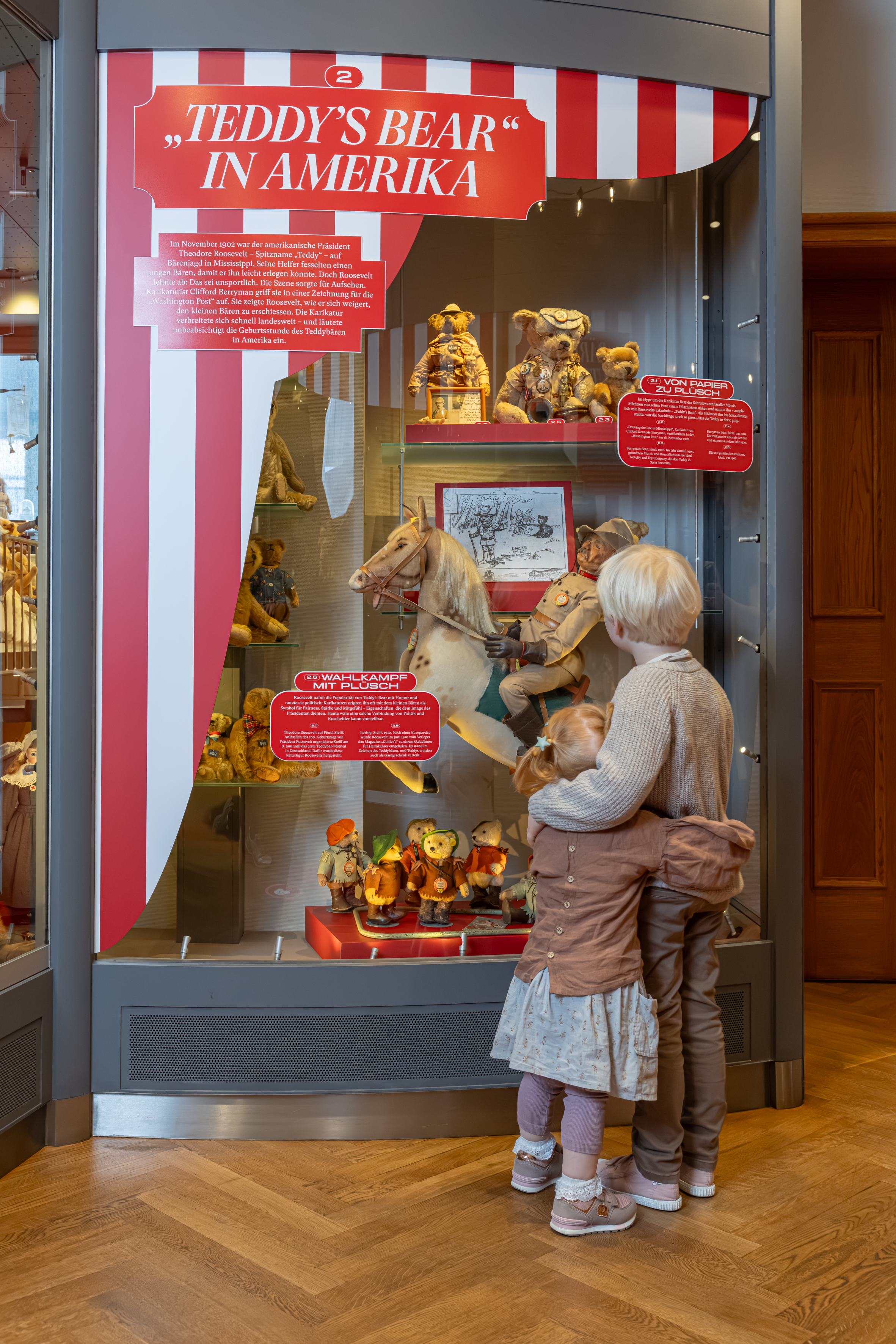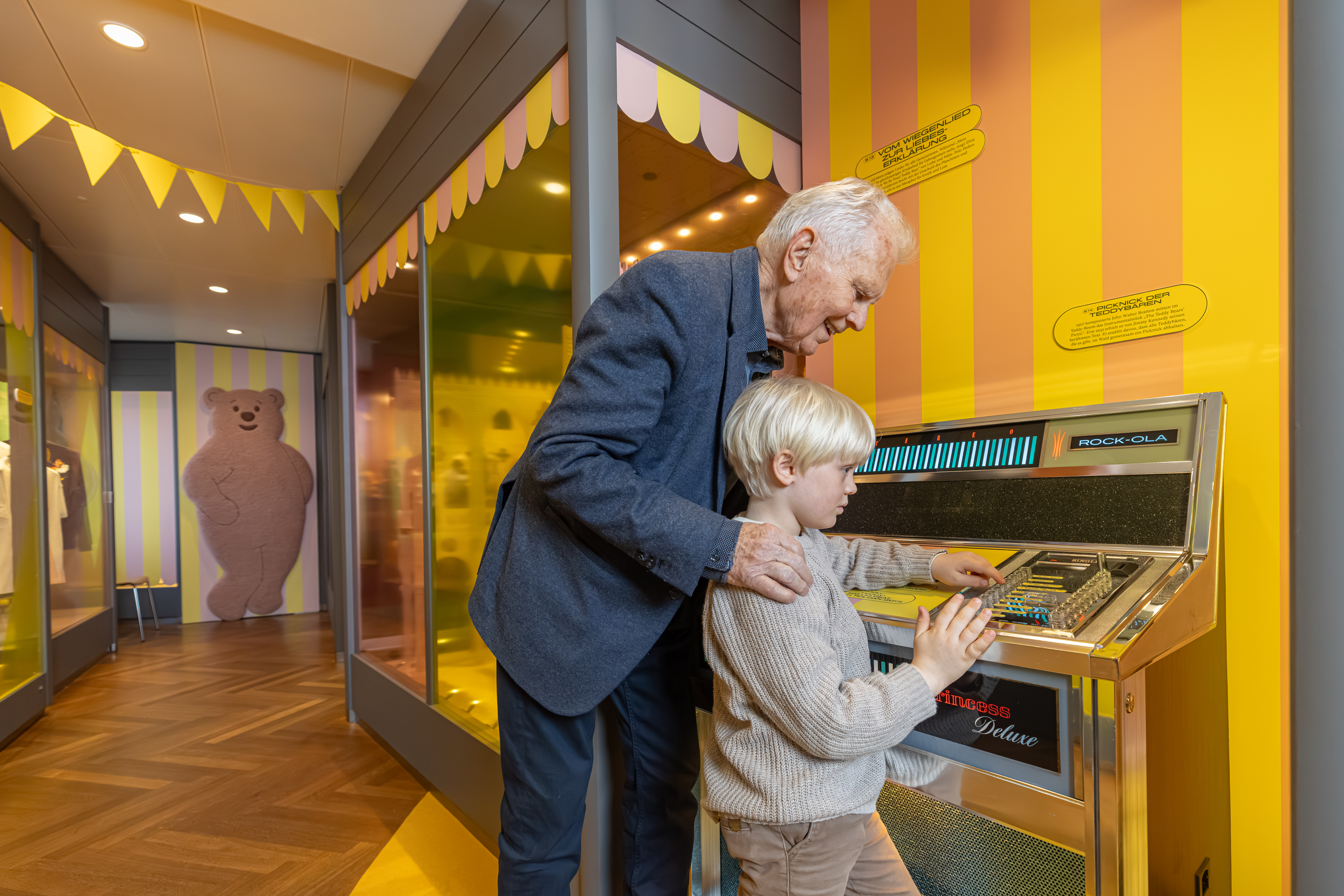 Die Ausstellung erzählt, wie diese Faszination für den Bären ein Plüschtier hervorbrachte, das zu weltweitem Erfolg gelangte. Im „Bärenjahr“ 1907 setzte ein wahrer Boom ein, Teddys eroberten die Kinderzimmer in Europa und den USA. Bald darauf schaffte der Bär in Gestalt von Winnie the Pooh, Paddington oder Balu den Sprung auf die Leinwand und ins Fernsehen. Und auch die Werbung nutzte seine bärige Strahlkraft, etwa mit dem Haribo-Goldbären. Inzwischen ist der Teddy längst Teil des Alltagsdesigns und ziert Lifestyle-Produkte ebenso wie Laufstege, für den ihn Marken wie Ralph Lauren oder Palm Angels neu interpretieren.